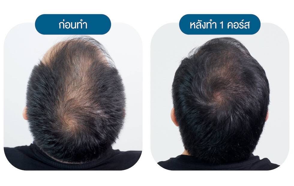 A: ของทรายเห็นผลตั้งแต่ครั้งแรกคือ ผ่านไป 1 เดือนคุณหมอบอกว่าตอบสนองต่อการรักษาดี 90% เหลือแค่กลางหนังศีรษะทำอีก 2 ครั้งก็กลับมาปกติเลยค่ะ ทั้งนี้ตอบสนองดีแค่ไหนชึ้นอยู่กับผลลัพธ์รายบุคคลไปนะคะ และถ้าสังเกตว่าบาง และกังวลควรรีบพบคุณหมอก็จะทำให้ maintain ผมได้ไวเพราะของทรายยังมีผมเล็ก ๆ กระตุ้นให้หนาได้อยู่ค่ะ